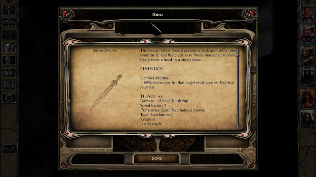 Общая тактика для воина: Вводные остаются прежними. Нам нужна высокая сила/низкий THACO, пару свитков Scroll of Protection from Magic, Haste и оружие от +4 и выше.